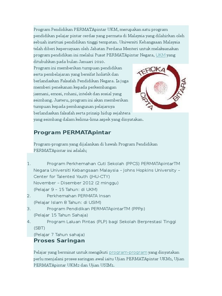 Ujian Program Permata Pintar Ukm Dah Tarikh Tutup Cerita Ita
